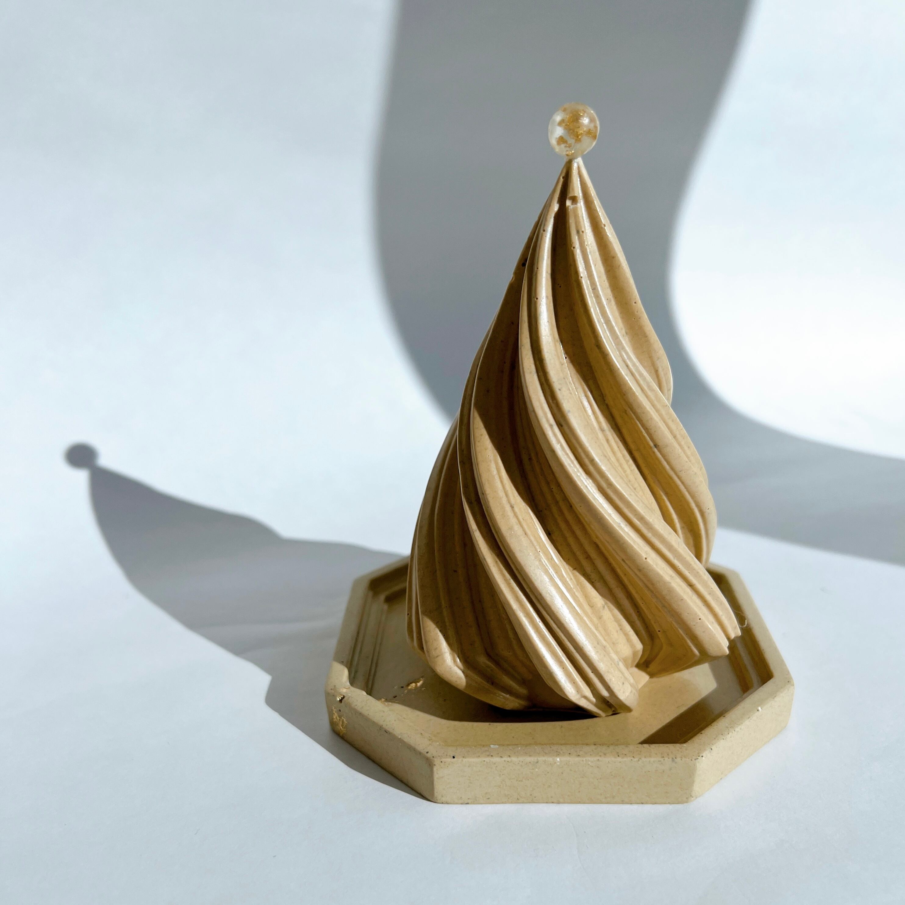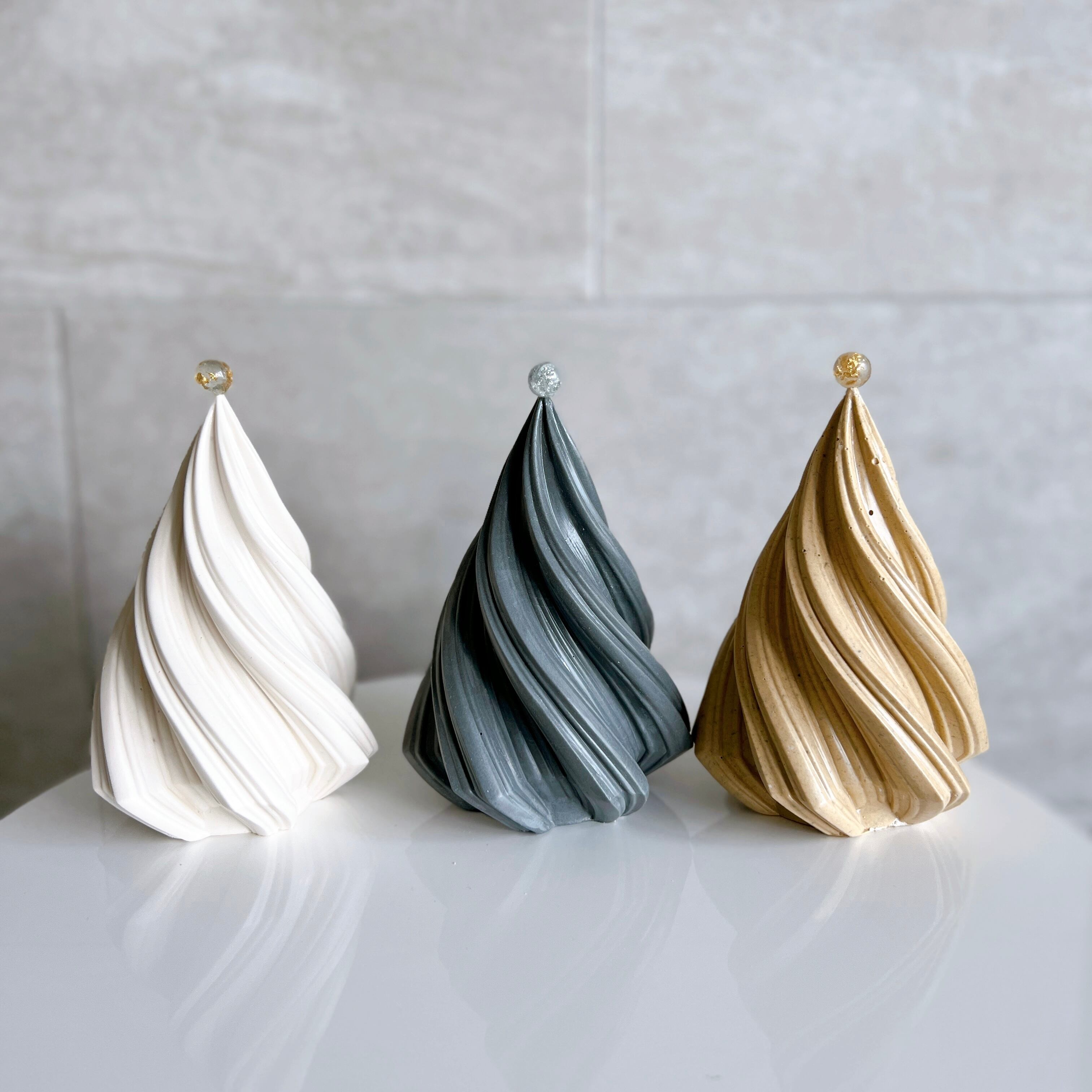 トップにゴールドが埋まったボールをちょこんと乗せた、クリスマスツリーのオブジェです。